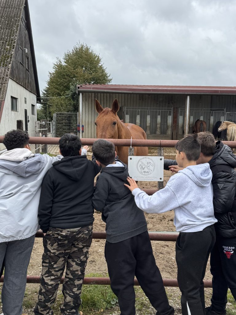 Im Knoblauchsland erfuhr die Klasse 6a Anfang Oktober viel über das Leben der Tiere auf dem Bauernhof. Sie durfte Esel streicheln, Pferde striegeln, „Hobby Horsing“ ausprobieren und sogar mit den Ponys spazieren gehen.